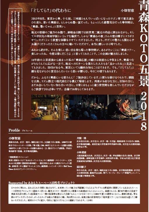 【青森KOTO五景2018 小畑智恵 箏Live+井関一博・小林道恵・福田優子】